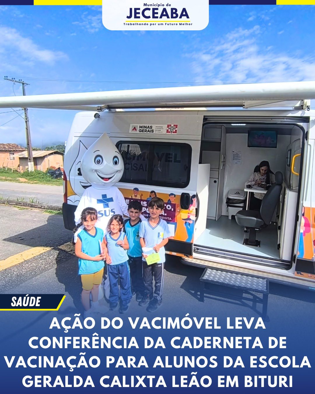 Ação do Vacimóvel leva conferência da caderneta de vacinação para alunos da Escola Geralda Calixta Leão em Bituri